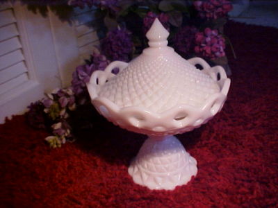 Vintage White Milk Glass Compote Candy Dish Bowl w Lid