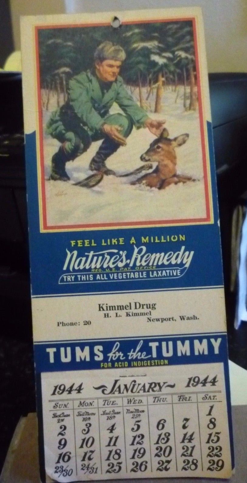 Vintage 1944 TUMS FOR THE TUMMY adv. Calendar complete KIMMEL DRUG Newport Wa.