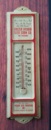 Krizer Hybrid Seed Corn Co.~Pierson Advertising Metal Thermometer -Oskaloosa, IA