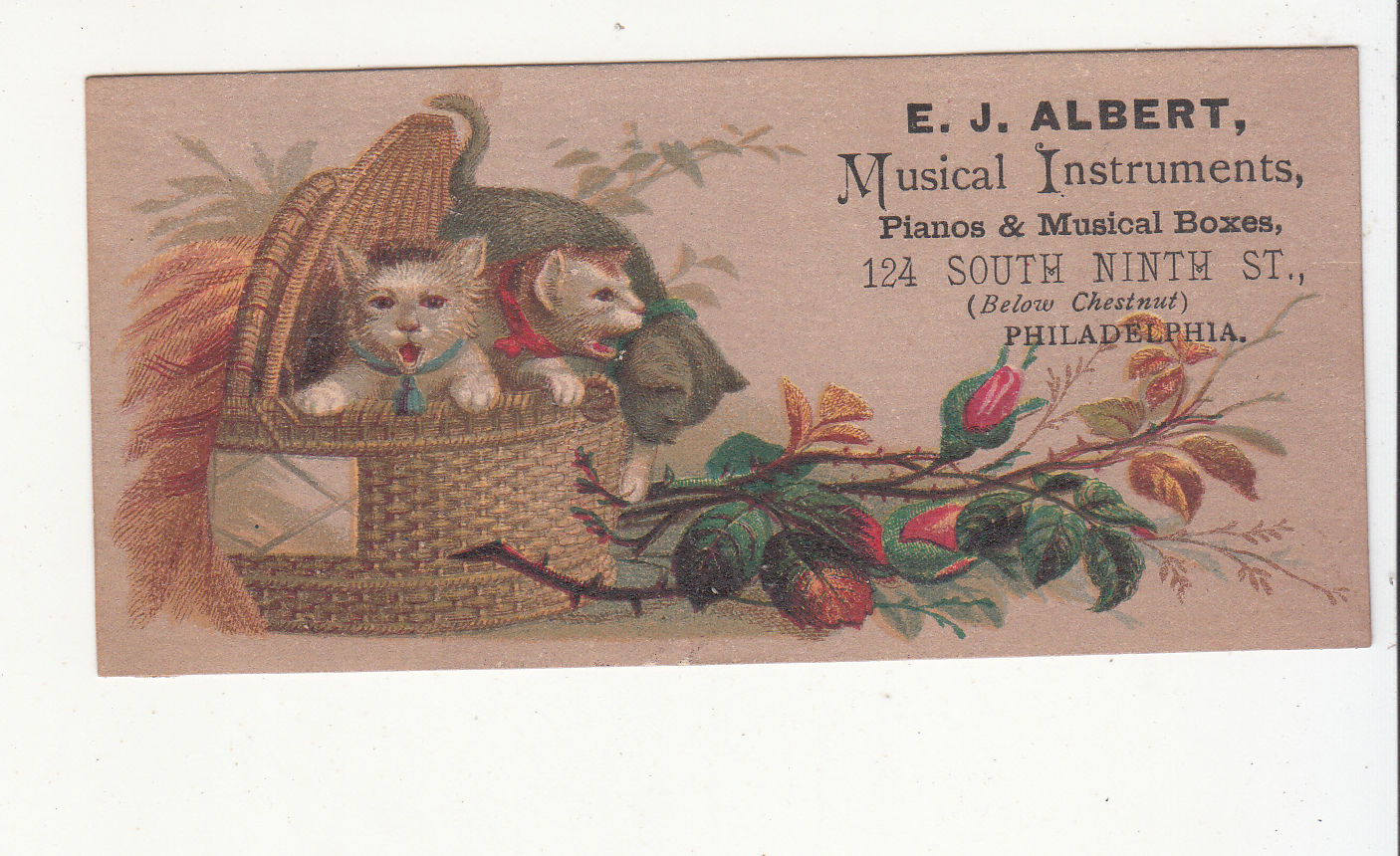 Title (ebay affiliate link): E J Albert Musical Instruments Violin Pianos Philadelphia Vict Card c 1880s
