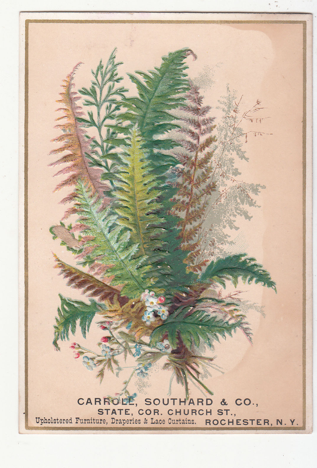 Carroll Southard & Co Rochester NY Furniture Drapes Curtains Ferns Card c 1880s