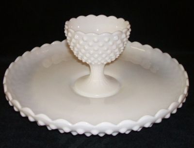 Scarce Fenton Milk Glass Hobnail Chip & Dip Serving Set