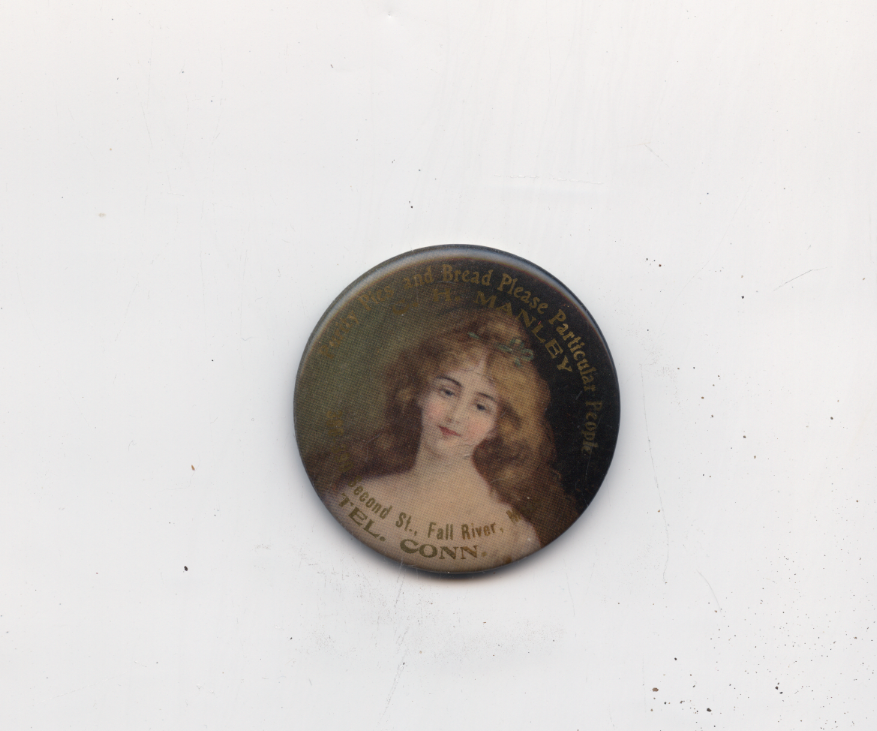 old celluloid pocket ad mirror, Manley bakery Fall Rver,MA advertising woman