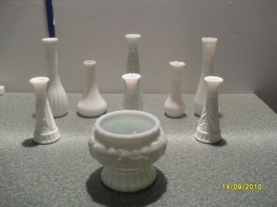 Vintage Milk Glass Vase LOT **** 9 TOTAL PIECES