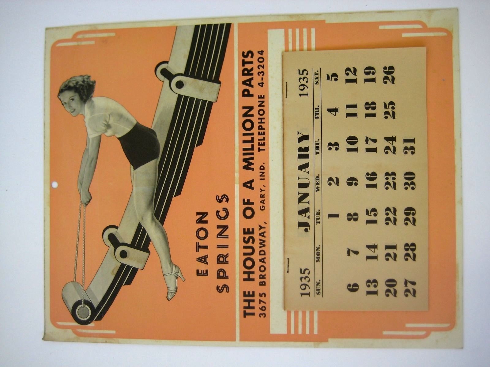 Title (ebay affiliate link): Vtg Antique Automotive Advertising Calendar 1935 Eaton Springs Pin-Up Girl