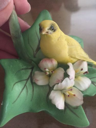 Title (ebay affiliate link): Vintage Capodimonte Yellow Bird On An Open Green Leaf. Excellent Condition