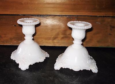 Vintage Pair/Set Milk Glass Candle Holders, Scroll Design Bases,Taper Holders