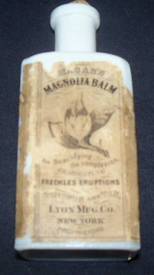 MILKGLASS HAGAN''S MAGNOLIA BALM FACE CREAM 1880S With 90% of the paper label