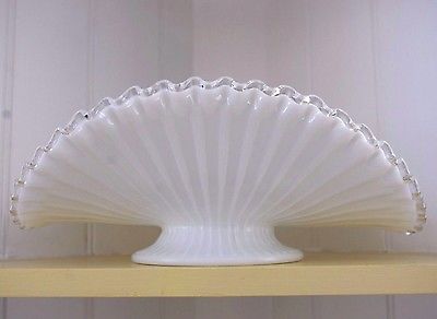 Title (ebay affiliate link): Vintage Fenton White Milk Glass Silver Crest Banana Fruit Bowl Wedding Stand EUC