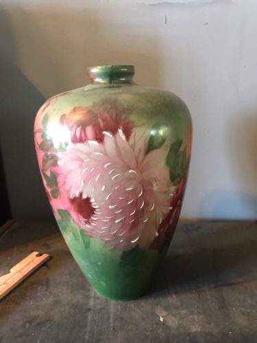 Vintage Hand Painted Flower Vase Urn - Milk Glass Old