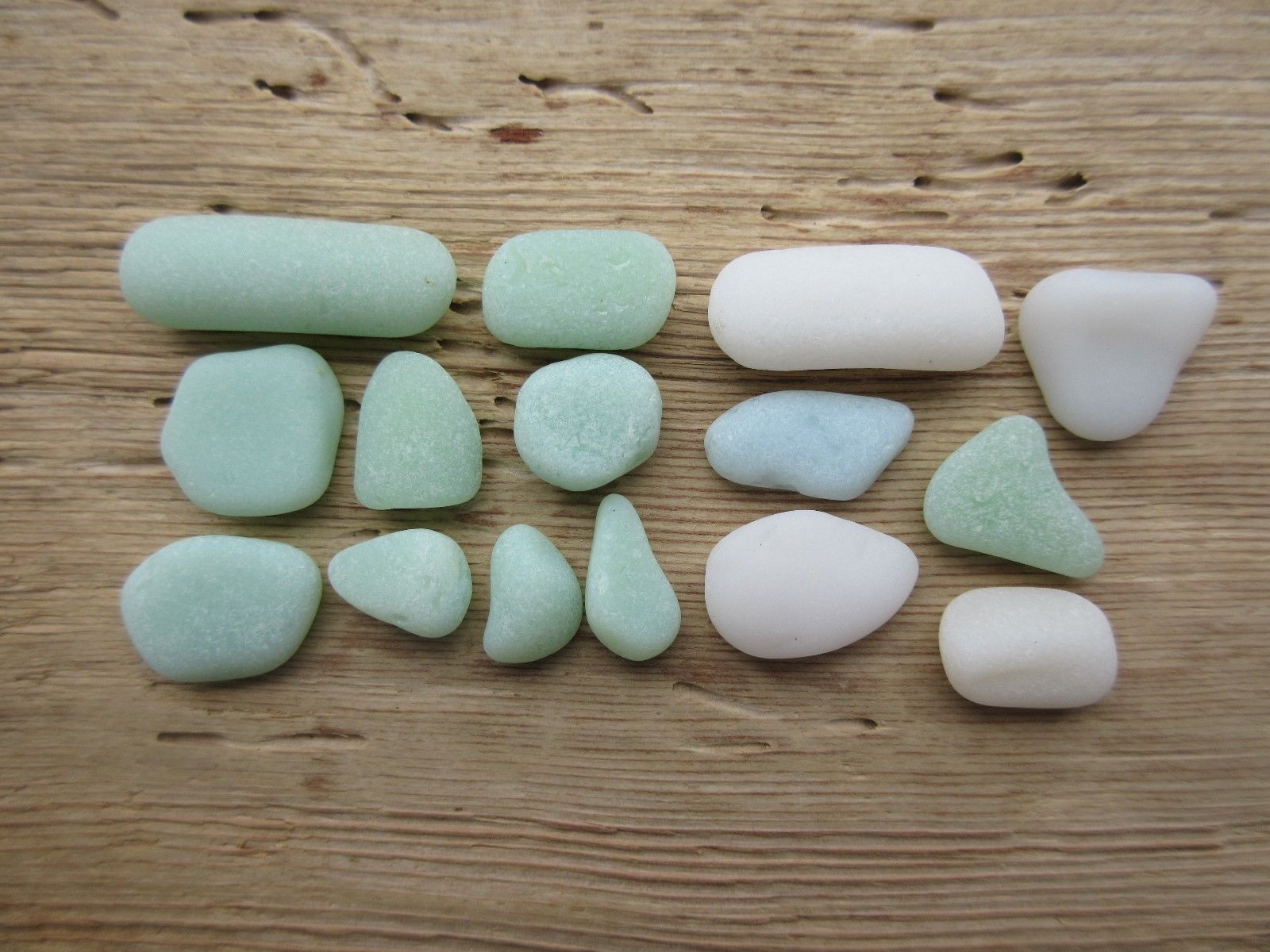 Title (ebay affiliate link): Sea Beach Glass. 15 pcs. Jadeite & Milk Glass. Surf-rounded. Jewelry.