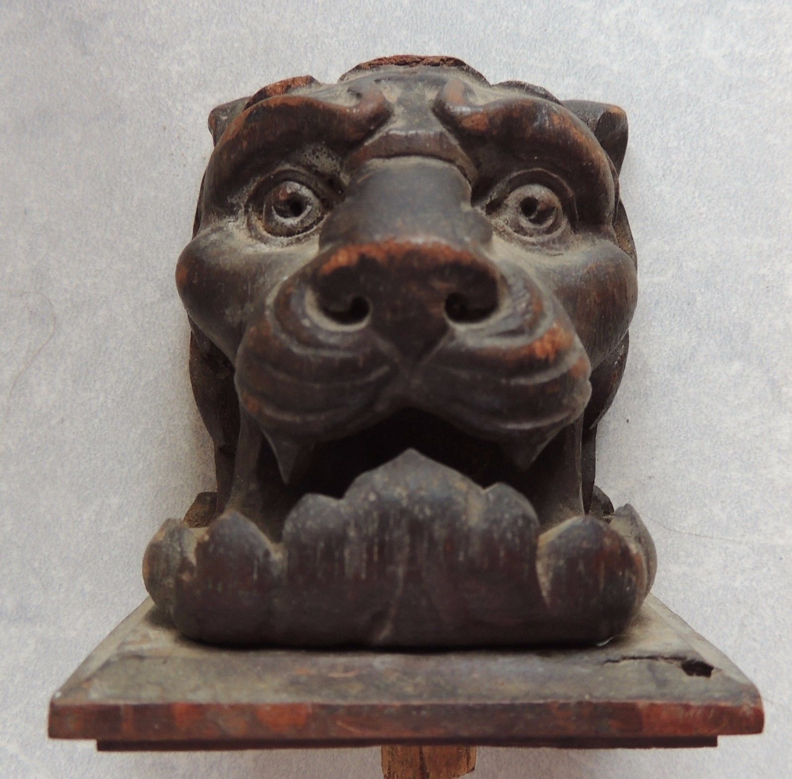 Title (ebay affiliate link): Antique 19th Century Carved Mahogany Wood Folk Art Lion Furniture / Clock Finial