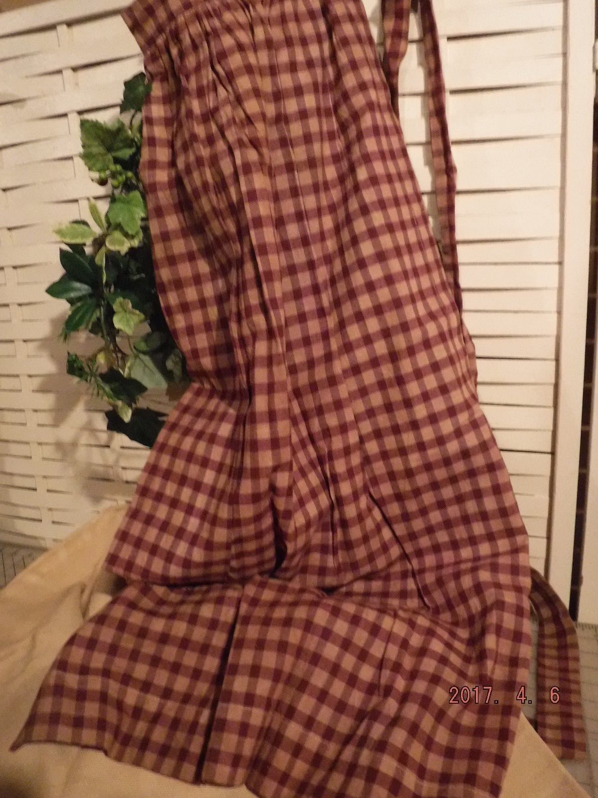 Title (ebay affiliate link): burgandy red check homespun apron tea stained primitive prairie