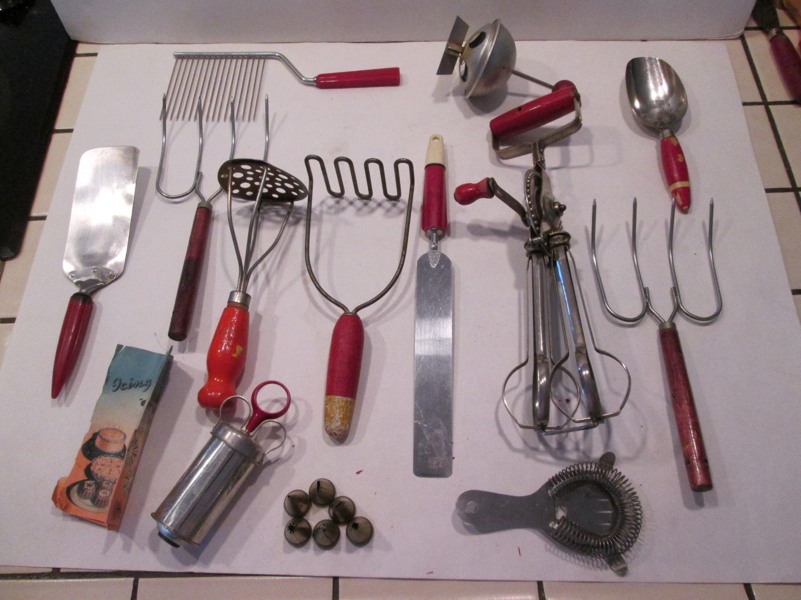 Title (ebay affiliate link): Lot Of Vintage/ Primitive Kitchen Utensils Most with RED Handles