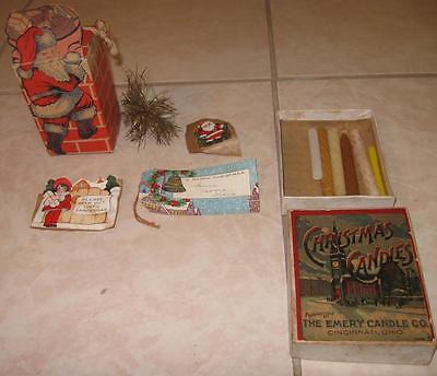 40s 50s VINTAGE CHRISTMAS CARDBOARD SANTA CANDY BOX and EMERY CHRISTMAS CANDLES