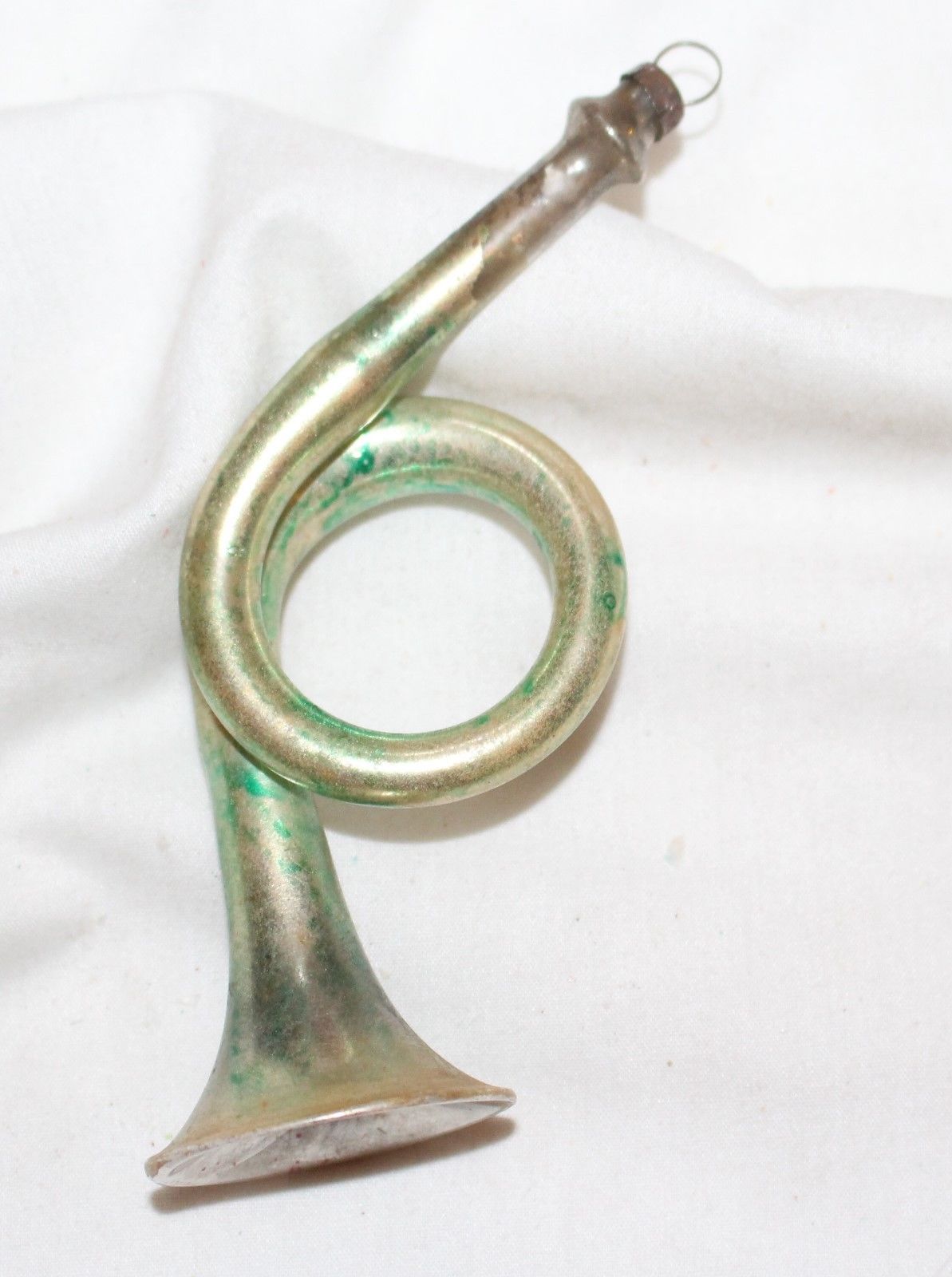 Title (ebay affiliate link): Pale Blue French Horn. Very nice 1920s German glass ornament.