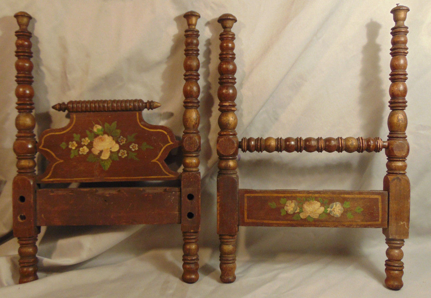 Title (ebay affiliate link): Antique Primitive Wooden Hand Painted High Post Doll Bed Very Detailed