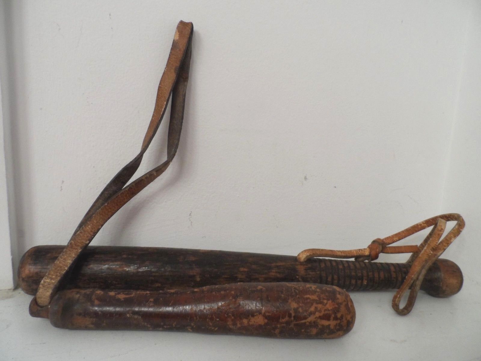 vintage antique billy club nightsticks compact leather straps police ? lot 2