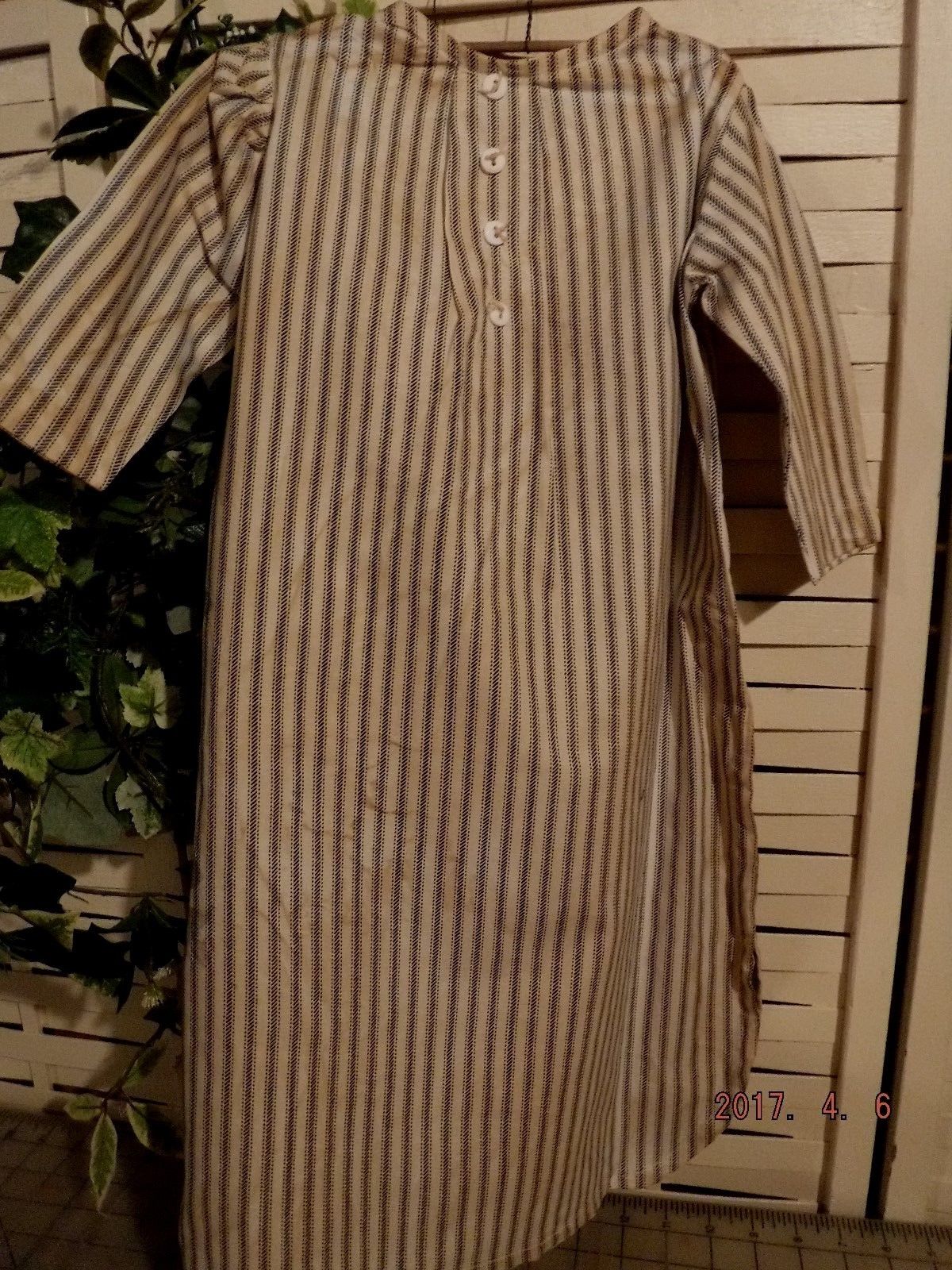 Title (ebay affiliate link): Primitive pioneer old time night shirt dark blue ticking stripe tea stained