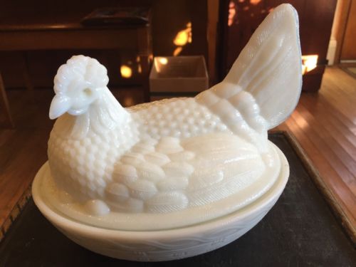 Title (ebay affiliate link): 1880s ATTERBURY Milk Glass HEN ON NEST 7" w/o Glass Eyes - Chicken Covered Dish