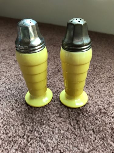 Title (ebay affiliate link): Vintage Art Deco Yellow Footed Milk Glass Salt & Pepper Shakers 1930s