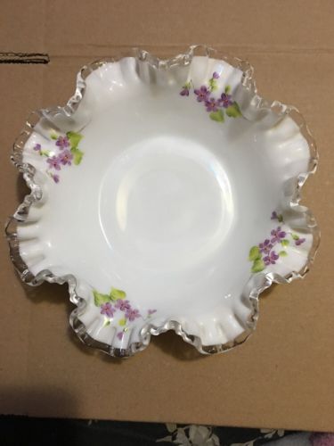 Title (ebay affiliate link): Vintage FENTON MILK GLASS CANDY DISH purple flowers Hand Painted