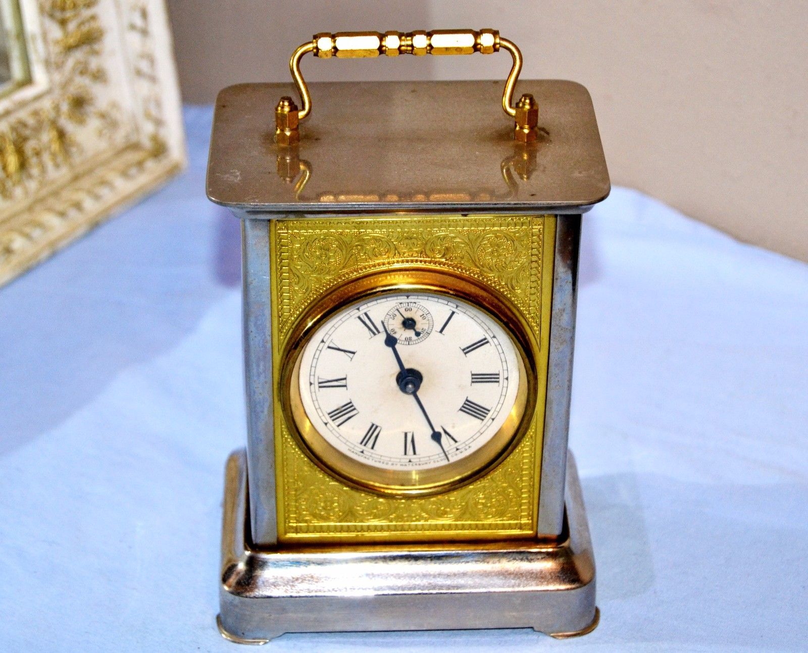 Title (ebay affiliate link): Beautiful Antique 1891 Waterbury Carriage Clock Running and Striking 6 inches