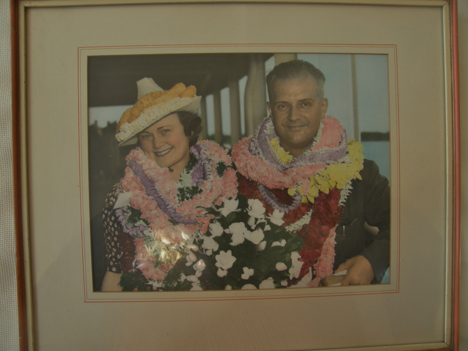 Title (ebay affiliate link): 1930''s Vintage Framed & Matted Hand Tinted Photo Kitschy Couple Hawaii 12" X 14"