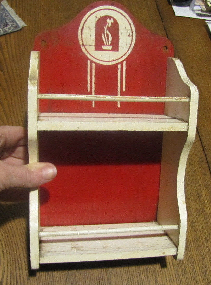 Title (ebay affiliate link): Vintage Antique Red Wooden Spice Rack with white tulip stencil doll furniture