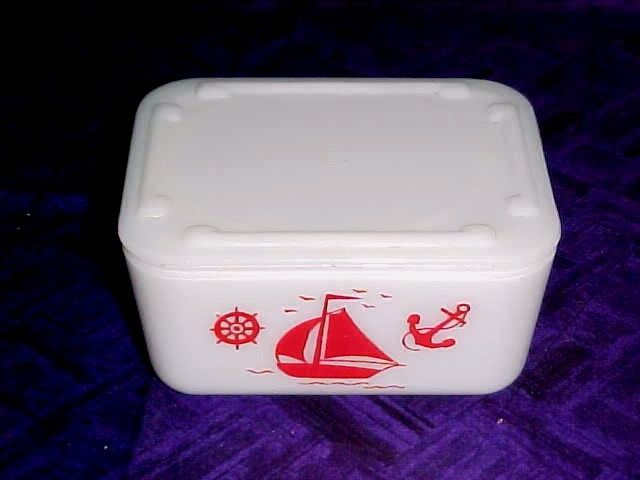 Title (ebay affiliate link): Vintage McKee Red SAIL BOAT- MILK GLASS Refrigerator Dish WITH LID-EXCELLENT