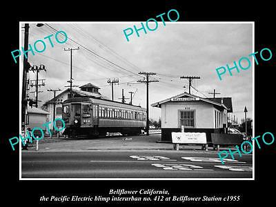 OLD HISTORIC PHOTO OF BELLFLOWER CALIFORNIA, PACIFIC ELECTRIC RAILWAY DEPOT 1955