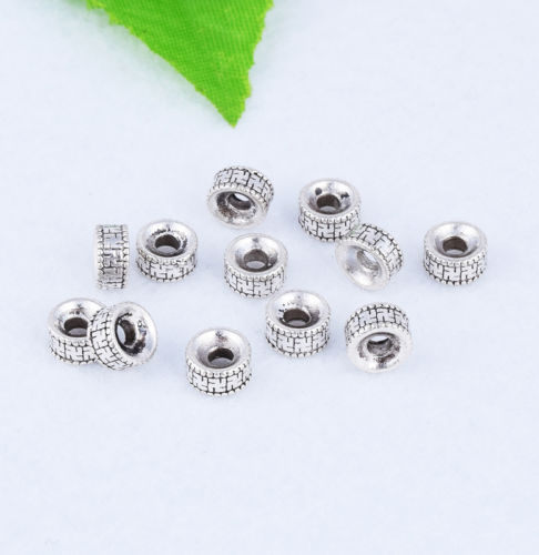 50 PCS Antique Silver Charm Spacer Beads Round Ring Jewelry Finding 6x3mm