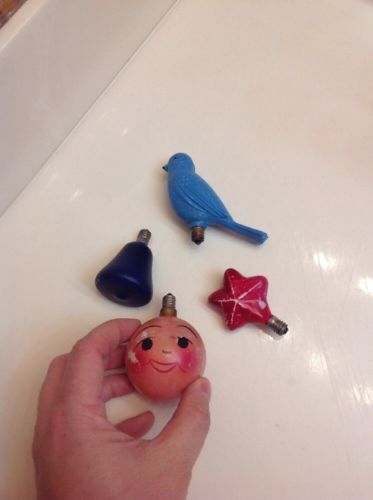 Title (ebay affiliate link): 4 Vintage Christmas Figural Bulbs Face Bird Bell Star Made In Japan