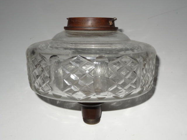 Antique Round Clear Cut Glass Oil Lamp Font.