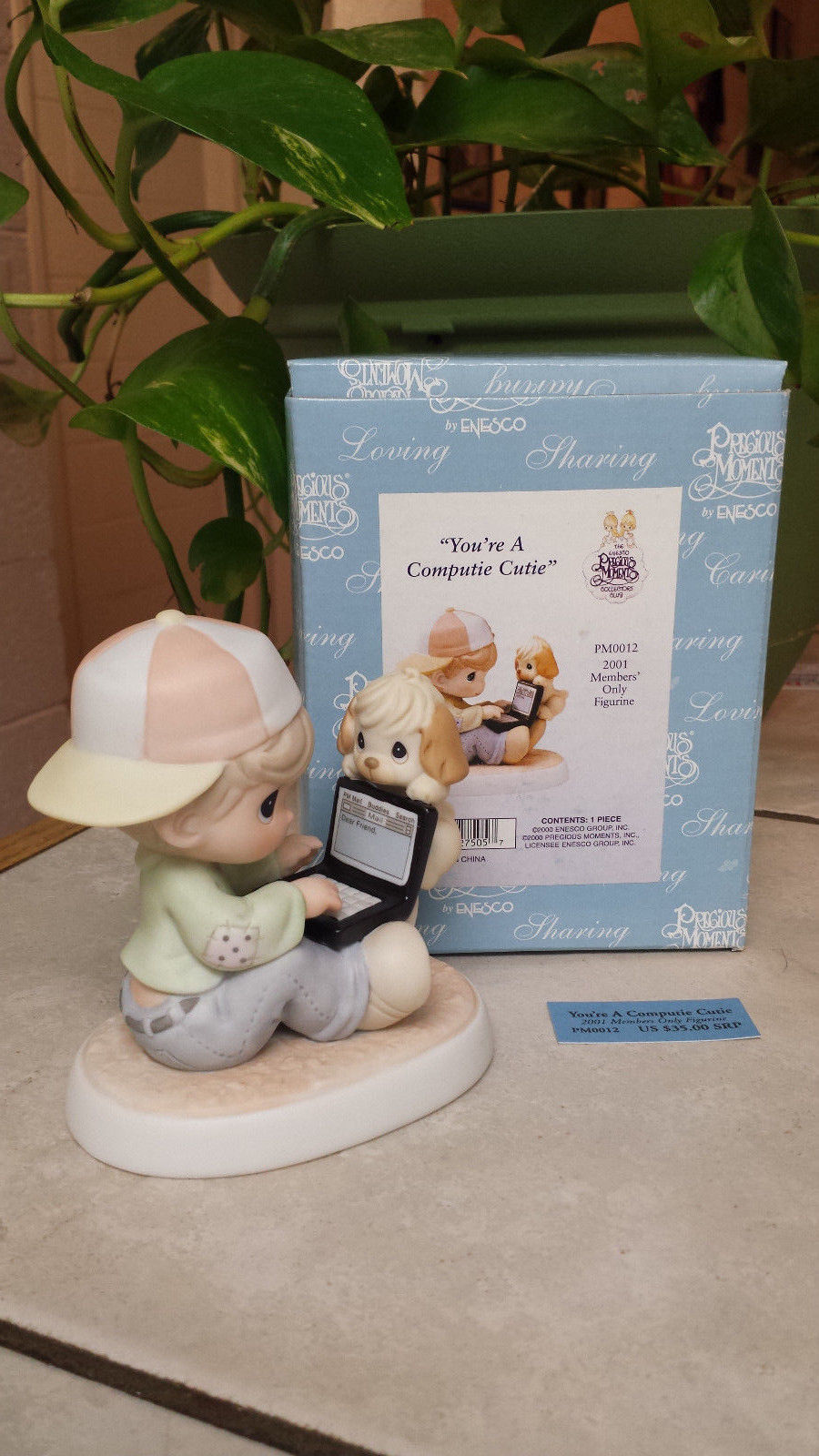 Title (ebay affiliate link): PRECIOUS MOMENTS "YOU''RE A COMPUTER CUTIE" PM0012 BOY W/LAPTOP & PUPPY WATCHING