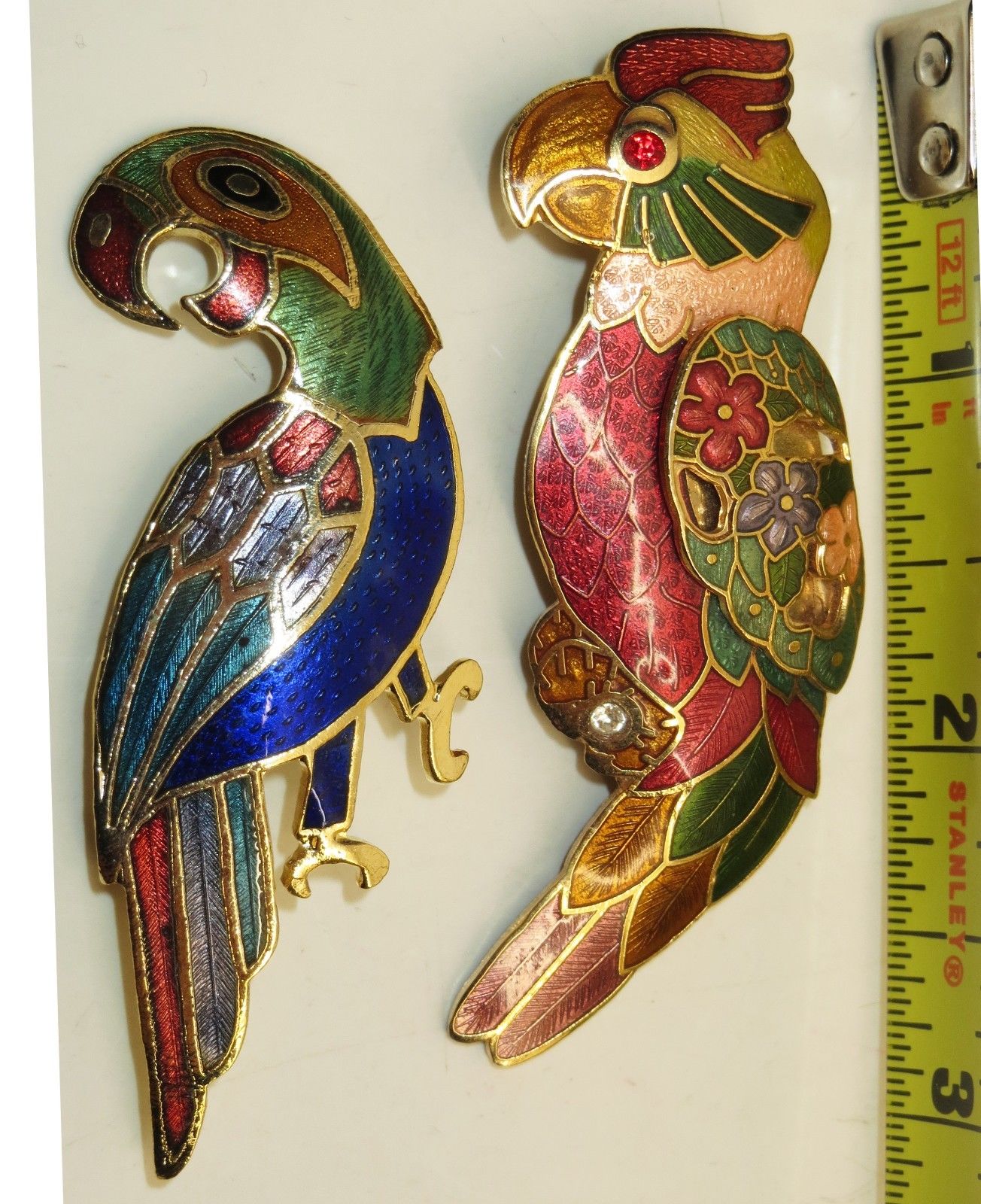 Title (ebay affiliate link): 2 Vintage Parrot Bird Brooch Pin Cloisonne Gold Enamel Brass 3" Lot