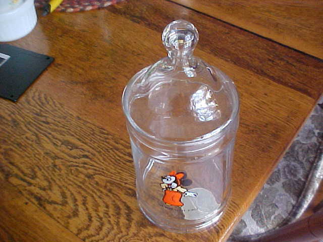 Title (ebay affiliate link): Vintage Clear Glass Jar Apothecary Candy Canister Minnie Mouse Walt Disney Jar
