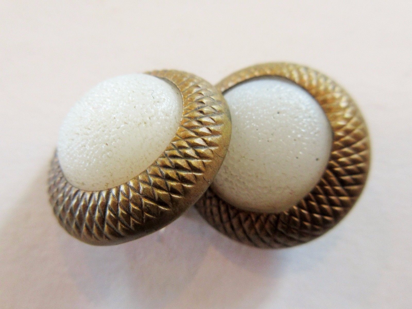 Fabulous Lot of 2 Antique Milk GLASS in Metal Waistcoat BUTTONS w/ ACORN Rims
