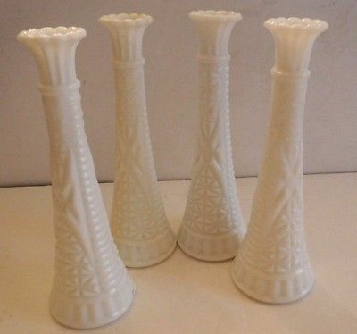 Title (ebay affiliate link): White Milk Glass Flower Bud Vase 9 Inches Tall Numbers 15 16 17 21 Set of 4