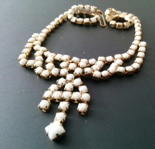 Title (ebay affiliate link): Vtg High Quality Designer Milk Glass Rhinestone Multirow Choker Necklace X39