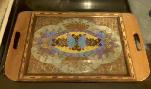 Title (ebay affiliate link): Vintage/Antique Brazillian Butterfly Wing Tray Some Irridescent Blue