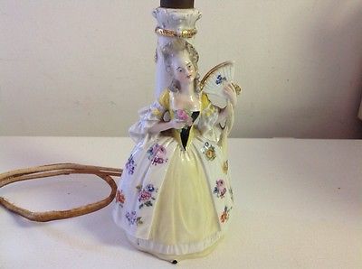 Vintage Porcelain Dresden Lady Figurine Lamp with Fan Germany