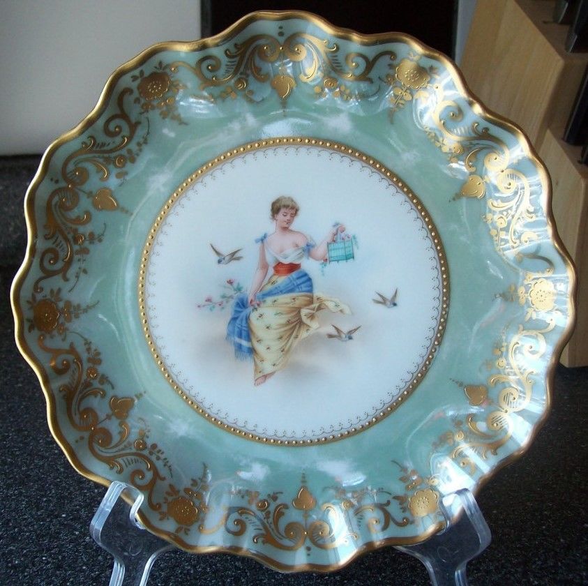 Title (ebay affiliate link): Royal Vienna/Fischer & Mieg GOLD ENCRUSTED LUSTER PORTRAIT PLATE Lady with Birds
