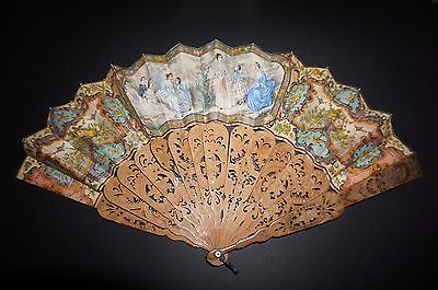 ANTIQUE VICTORIAN CARVED WOOD STICKS FIGURAL SCENE FAN DAMAGED