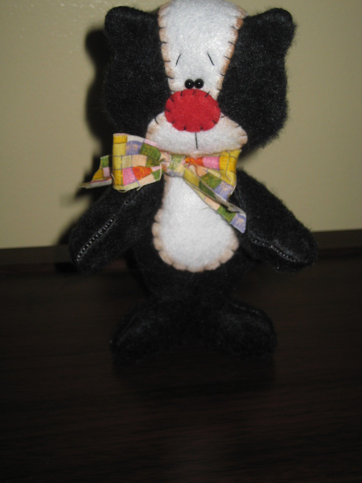 PRIMITIVE HC STANDING STRIPED SKUNK DOLL ORNIE SHELF SITTER BOWL FILLER