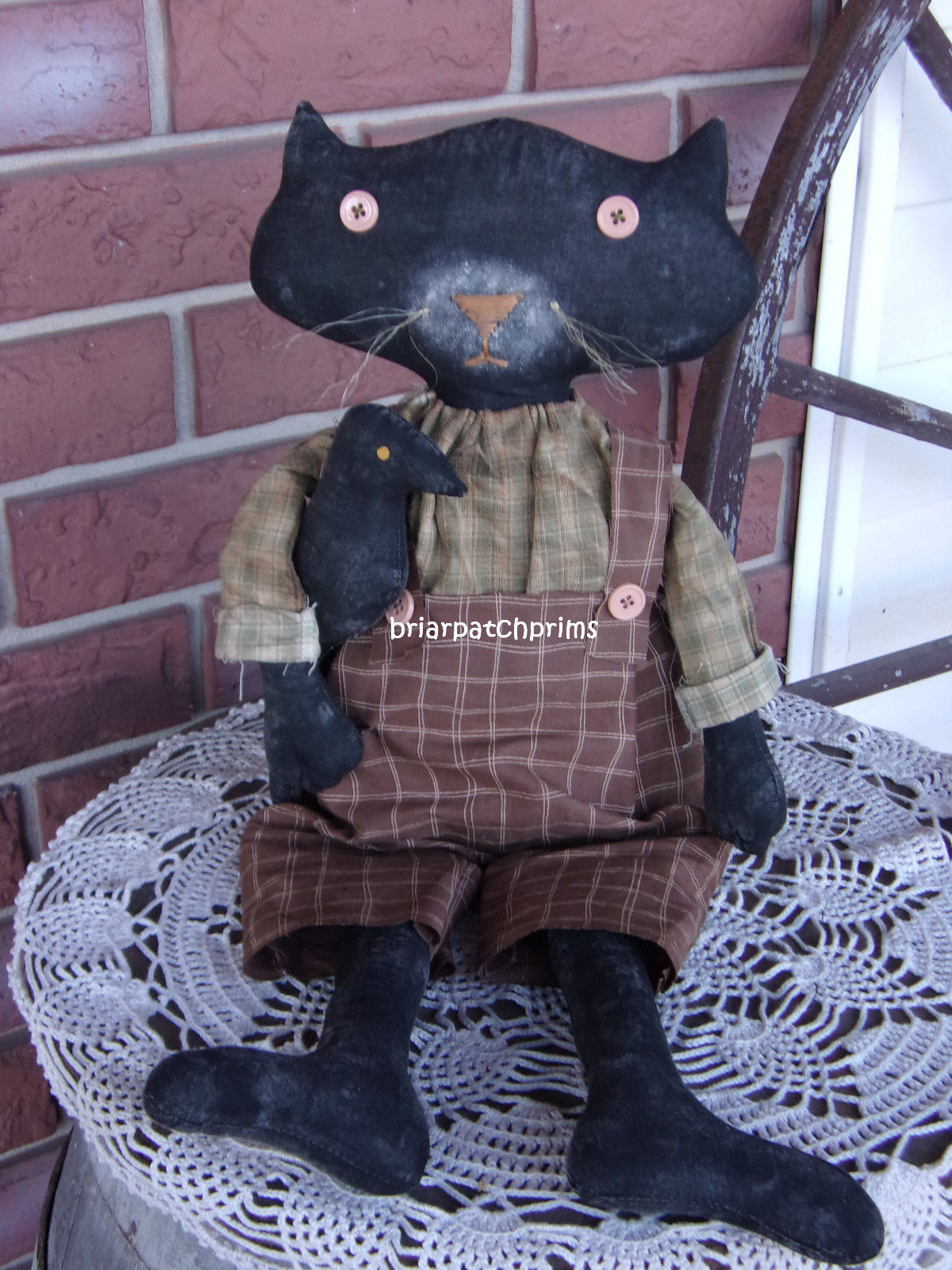 Title (ebay affiliate link): Primitive Cat Doll w his pet Crow Farmhouse Kitty Decoration Folk Art