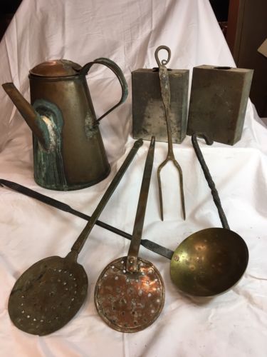 Title (ebay affiliate link): Antique Primitive Forged Tin Copper Pot Utensils Cooking Reenactment Civil War