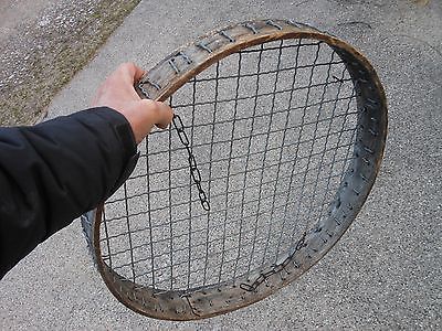 Antique Tobacco Drying Leaf Basket 24" diameter x 3" Wood Band Frame, Metal rack