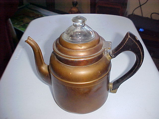 Title (ebay affiliate link): Antique metal and glass coffee pot with wood handle - very nice