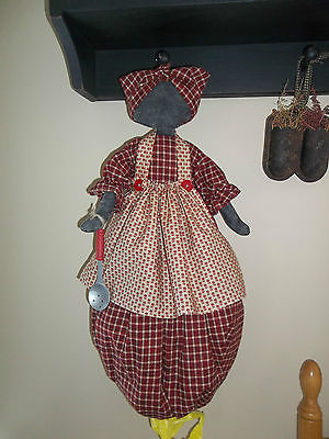PRIMITIVE RAGGEDY BLACK FOLK ART PLASTIC BAGHOLDER MAMMY DOLL